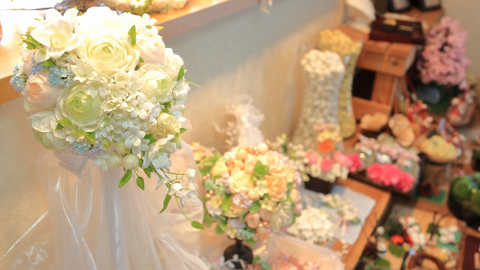 工房 夢繭*花は「盛岡小さな博物館」 に指定されており、蚕のまゆ玉から生まれる多彩な作品や、養蚕に関する資料を展示しております。30分程度のミニ制作体験も承ります。