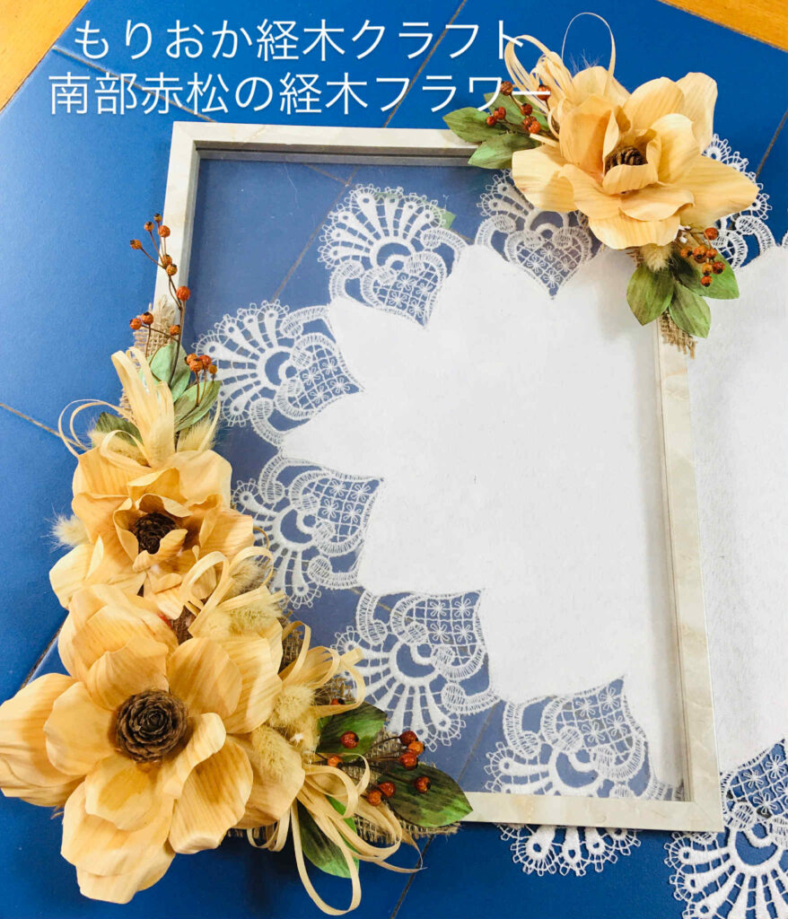 この度、来年の干支、「午」の繭細工が公開となり、ご購入や製作をしていただける他、チャグチャグ馬コの繭細工、工房が実施しているプロジェクト「もりおか森の恵みクラフト」で開発している南部赤松の経木フラワーを飾ったフレームもお作りいただけます。