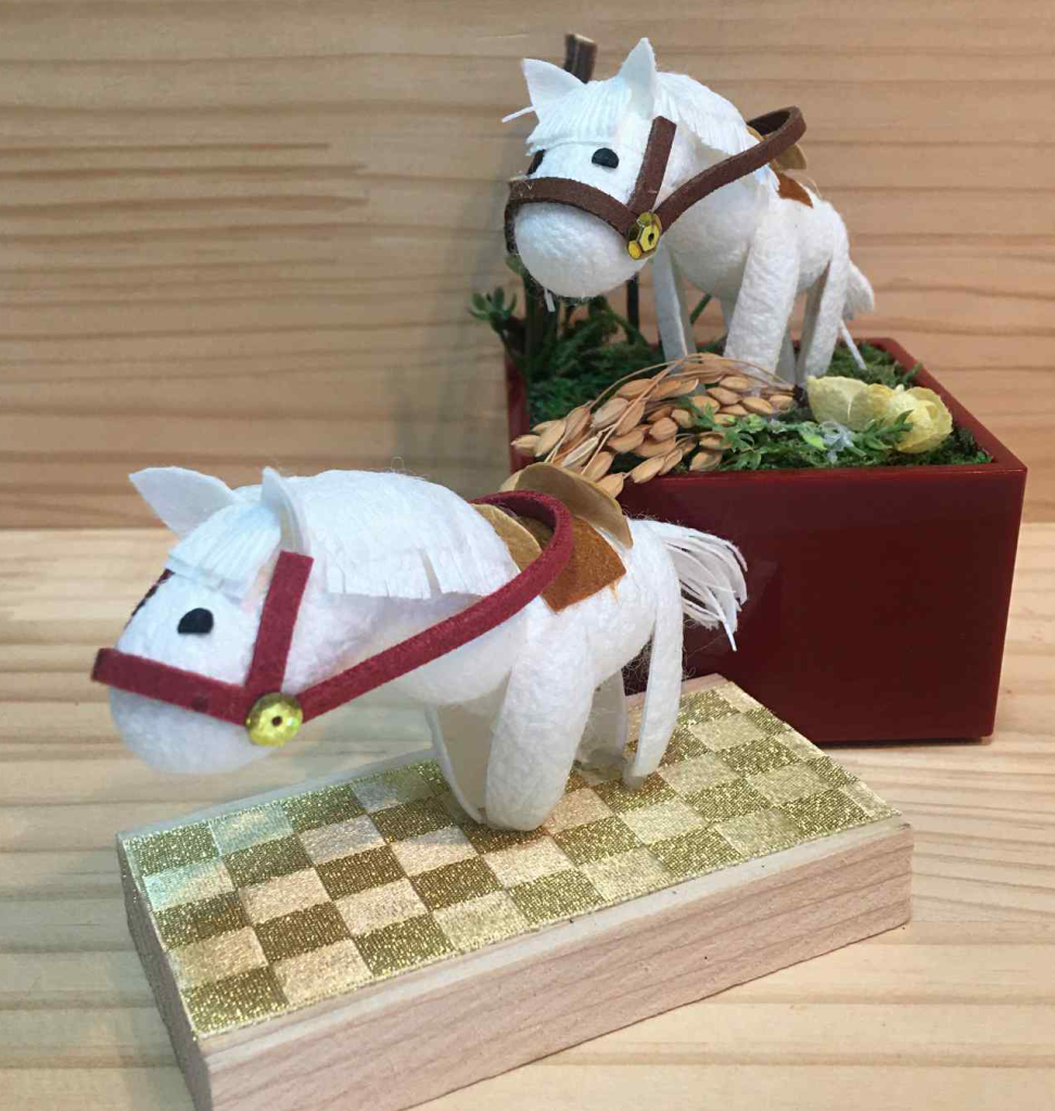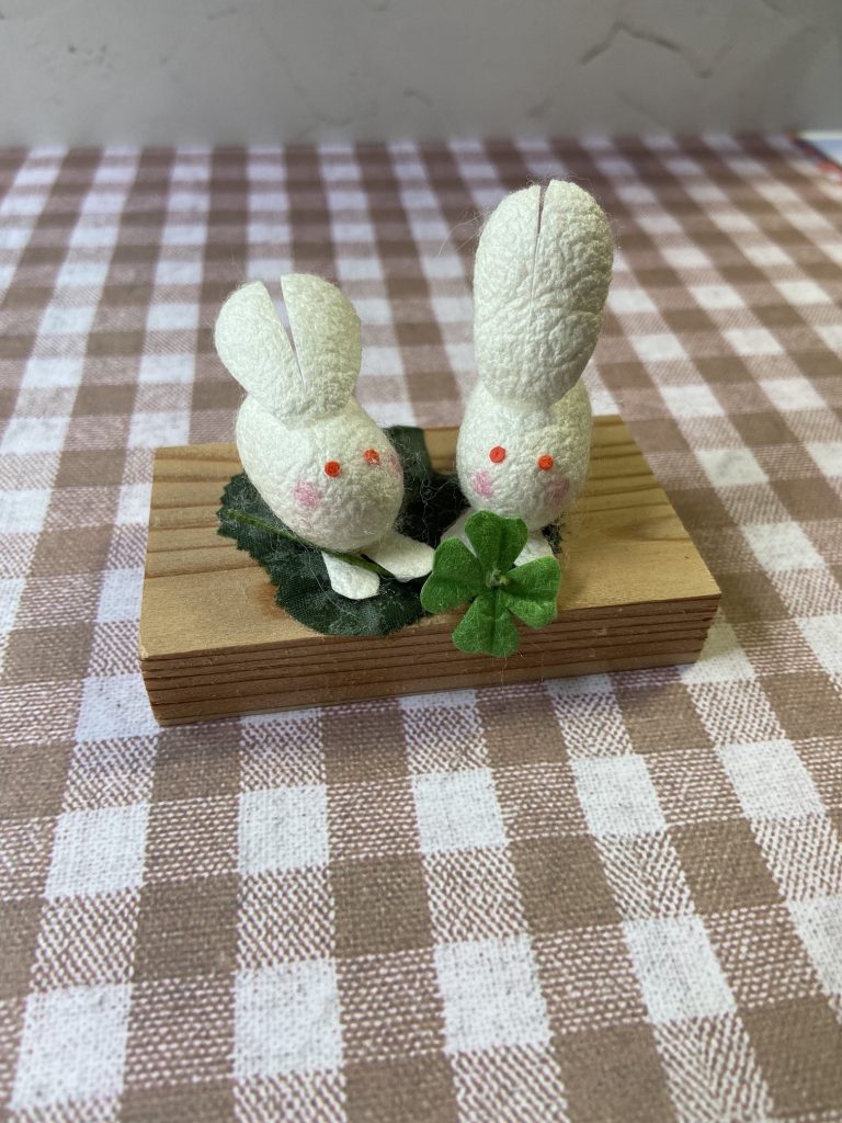 出来上がった動物は、木台に接着して、クローバーやドライフラワー、小枝などからお選びいただき飾り付けします。