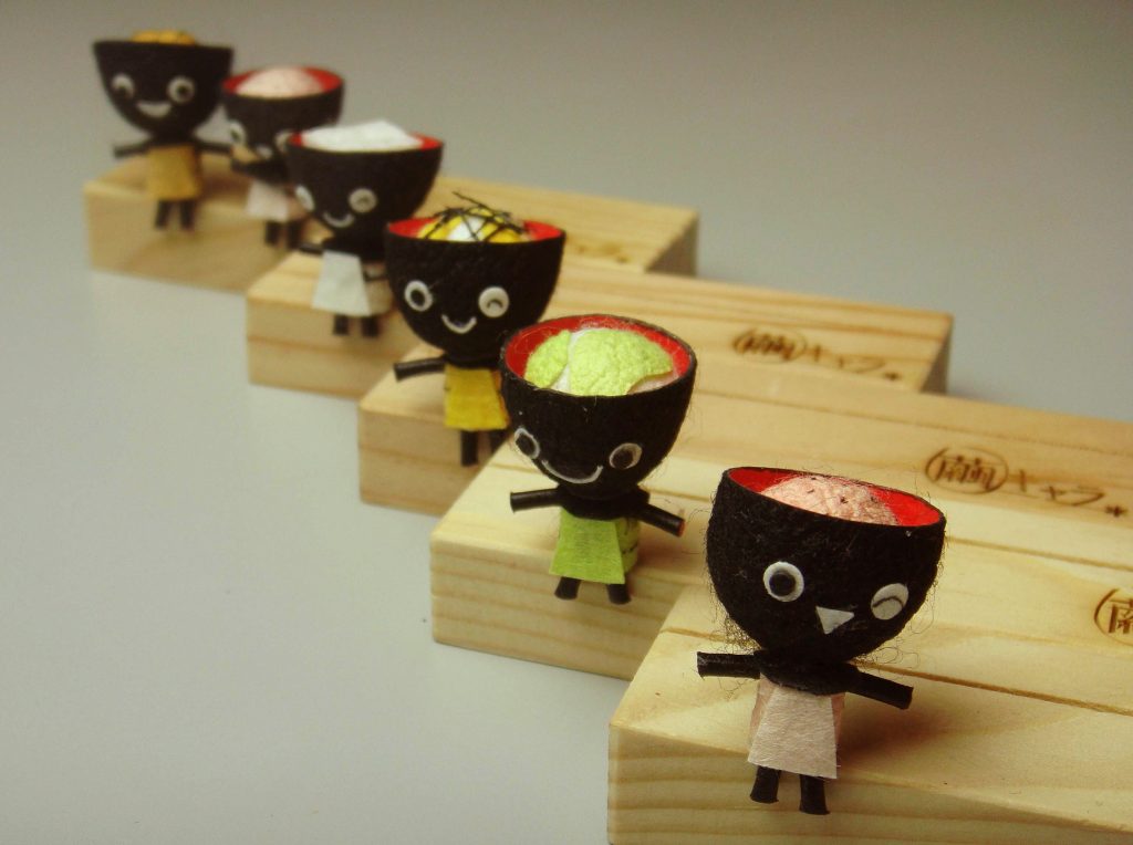 岩手の名物「わんこそば」をモチーフにしたキャラクター「わんこきょうだい」(全5種)、岩手と関わりの深い源義経らをモチーフにした「義経」、「弁慶」など、蚕の繭玉で作り出す「繭キャラ」のカードスタンドを作ってみませんか。