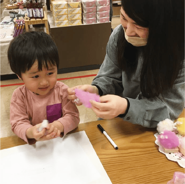 盛岡の名所をまゆで表現した石割桜(10輪)や、ふくろう・ひつじ・うさぎ・カエルなどの可愛らしい動物のペア(同じ動物を2匹)、その他、季節の体験メニューもご用意しております。