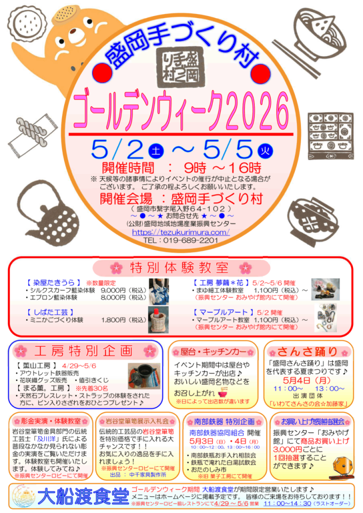 そのほかにも盛岡手づくり村の魅力が詰まった、楽しいイベントが盛りだくさん。ゴールデンウィークは盛岡手づくり村にぜひお出かけください☺️